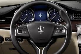 The big, bold bod makes a sensational first impression, but it's what's under the hood that's designed to leave the senses reeling. The prime engine is a new 3.8-liter V-8 with dual twin-scroll turbos and direct injection. Designed by Maserati and built by Ferrari, the new mill -- though nearly a full liter down in displacement over the previous naturally aspirated unit -- makes a staggering 523 horsepower (compared with 400 hp for the old car) and 479 lb-ft of torque at just 2000 rpm (versus 339 lb-ft). Mated with a new ZF eight-speed paddle-shift automatic, and aided by the new car's weight-reduction regimen, the new V-8 makes this the fastest Maserati four-door in history. The company claims a 0-to-62-mph time of just 4.7 seconds and a top speed of 191 mph. (Only Maserati's Enzo-based MC12 sports car is faster.) At the same time, Maserati trumpets a 20 percent reduction in fuel consumption. By late 2013 in the U.S., Maserati will unveil a second Quattroporte powertrain